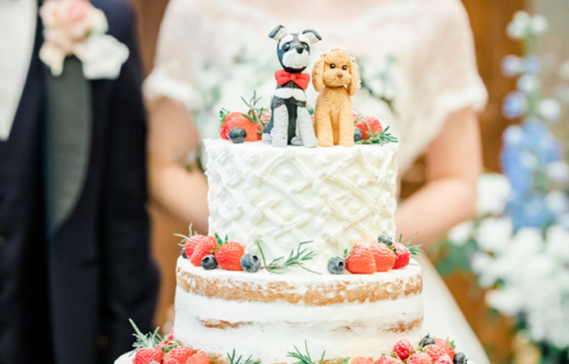 生地から手作りのウエディングケーキは、パティシエと直接打ち合わせをして、マジパンやアイシングクッキーで可愛いペットを表現できます♪